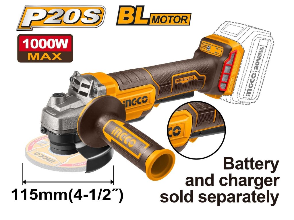 Ingco CAGLI211156 AKU úhlová bruska 115mm bez baterie a nabíječky (CAGLI211156)