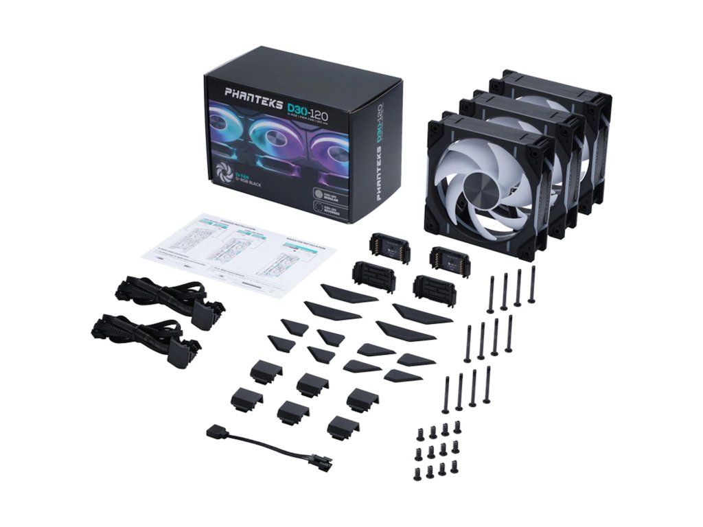 PHANTEKS D30 PWM D-RGB 120mm ventilátor, 3ks, černý (PH-F120D30_DRGB_PWM_BK01_3P)