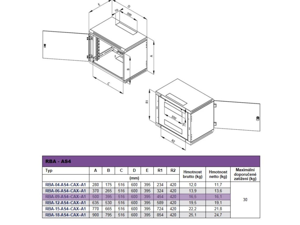 Popis produktuRozměry RBA-09-AS4-CAX-A1