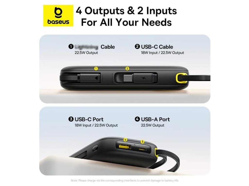 Baseus EnerFill FC31 Qpow 3 – Powerbanka 20 000 mAh, 22,5 W, s vestavěnými kabely USB-C a LightningPowerbanka Baseus EnerFill FC31 Qpow 3 nabízí velkou kapacitu 20 000 mAh a výkon až 22,5 W, ideální pro rychlé nabíjení většiny smartphonů, tabletů a menší elektroniky. Díky vestavěným kabelům USB-C a Lightning a dalším portům USB-C a USB-A můžete nabíjet až 4 zařízení současně. Kompaktní provedení s digitálním displejem poskytuje přehled o stavu baterie a bezpečné používání díky ochranám proti přehřátí, přetížení, přepětí a zkratu.