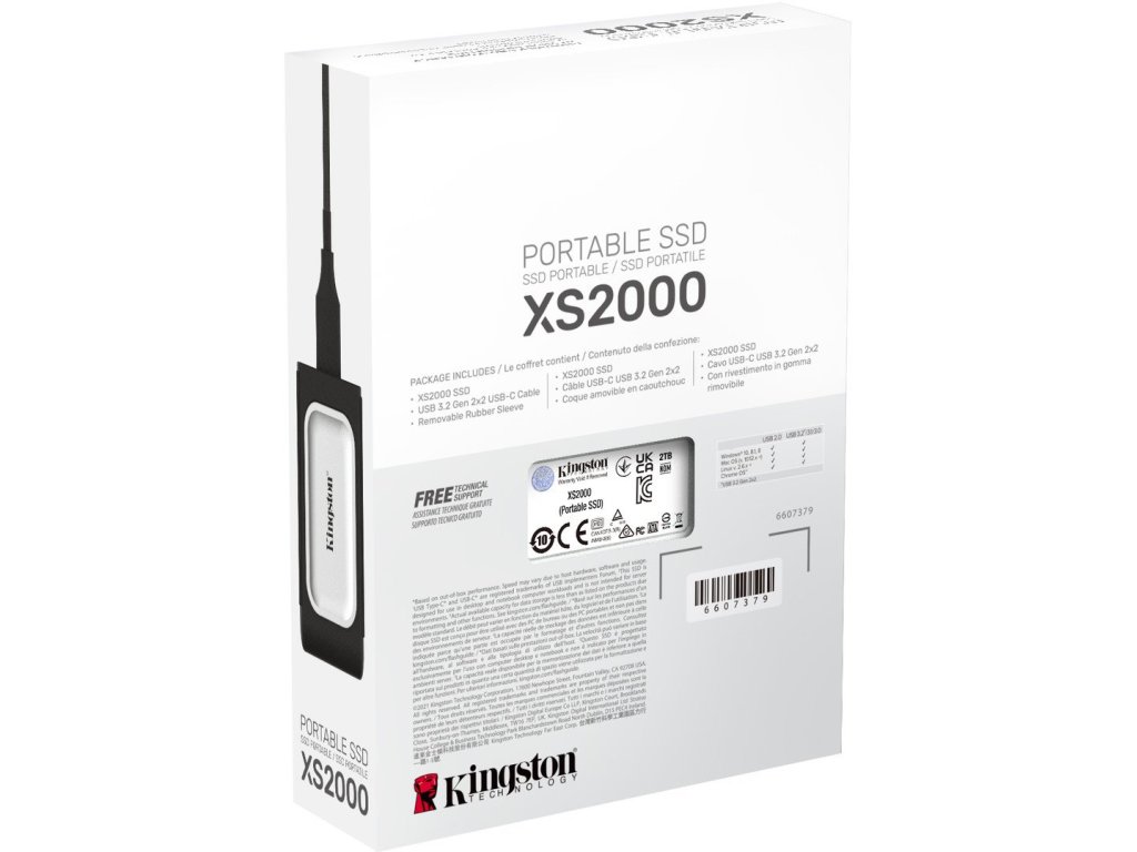 Přenosný SSD disk Kingston XS2000 využívá rychlosti rozhraní USB 3.2 Gen 2x2 k přenosu mimořádného výkonu kompaktního externí disku. Bleskové přenosové rychlosti až 2000 MB/s umožňují, aby disk XS2000 zajistil zvýšenou produktivitu s minimem přerušením. Disk XS2000 nabízí možnosti až 2 TB vysokorychlostního úložiště pro bleskové odkládání a úpravy obrázků s vysokým rozlišením, videí ve formátu 8K a velkých dokumentů. Disk je připraven v budoucnu držet krok s požadavky na úložiště a kompatibilitu s většinou zařízení. Připojuje se pomocí rozhraní USB typu C3, což tvůrcům obsahu umožňuje přístup k datům kdekoli, a to na počítači nebo mobilním zařízení. Disk XS2000 je vybaven odnímatelným robustním pouzdrem se stupněm krytí IP553, který odolává vodě i prachu, což z něj činí ideálního společníka pro fotografování v terénu a na výpravách. Můžete jej využívat jak v práci, tak při hrách či zábavě.Rychlost až 2000 MB/s s rozhraním USB 3.2 generace 2x2