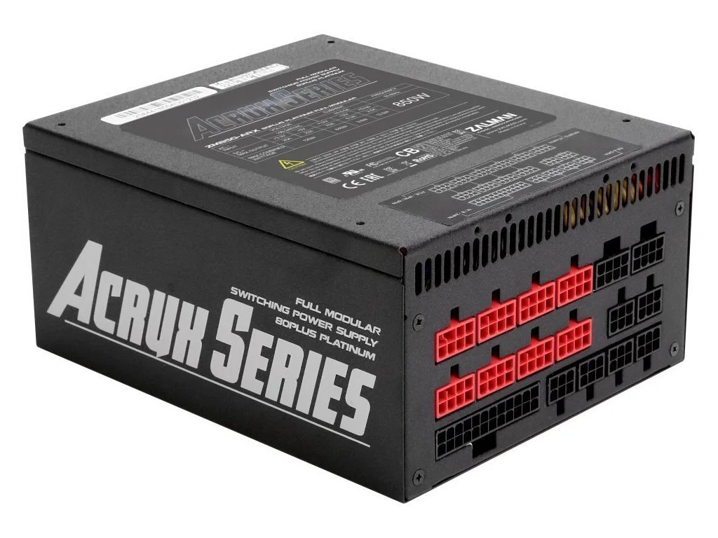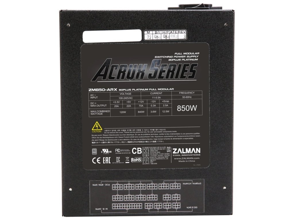 ZALMAN ZM850-ARX 850 WNapájecí zdroj o výkonu 850 W je osazen tichým, 135 mm velkým ventilátorem. Modulární kabeláž ušetří cenné místo ve skříni. Účinnost zdroje je 80PLUS Platinum.