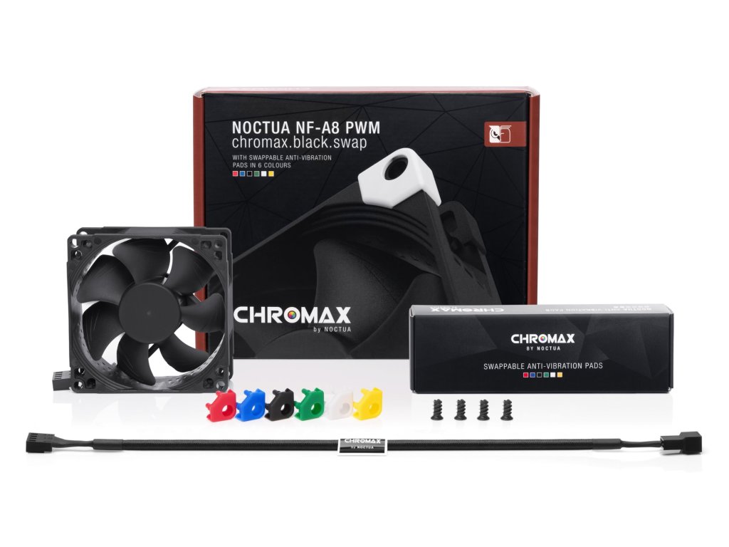 Řada NF-A8 se zasloužila o přední volbu při výběru 80mm větráčků množstvím ocenění a doporučení od technických časopisů a stránek po celém světě. NF-A8 PWM chromax.black.swap kombinuje tichý chod této řady a elegantní celočerný design řady chromax.black. Balení obsahuje také sadu protivibračních podložek pro ty, kteří si rádi svůj stroj barevně sladí. Kvalitu chodu a spokojenost také zaručí SSO2 ložisko, více než 150000 hodin MTTF a 6 let záruky u výrobce.Technické specifikace: