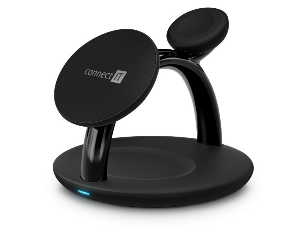 CONNECT IT MultiCharge 3 v 1 MagSafe Wireless Fast Charge bezdrátová nabíječka, ČERNÁ (CWC-9060-BK)