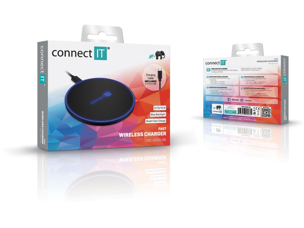 Connect IT WiFast bezdrátová nabíječka, 10 W, černá (CWC-6500-BK)