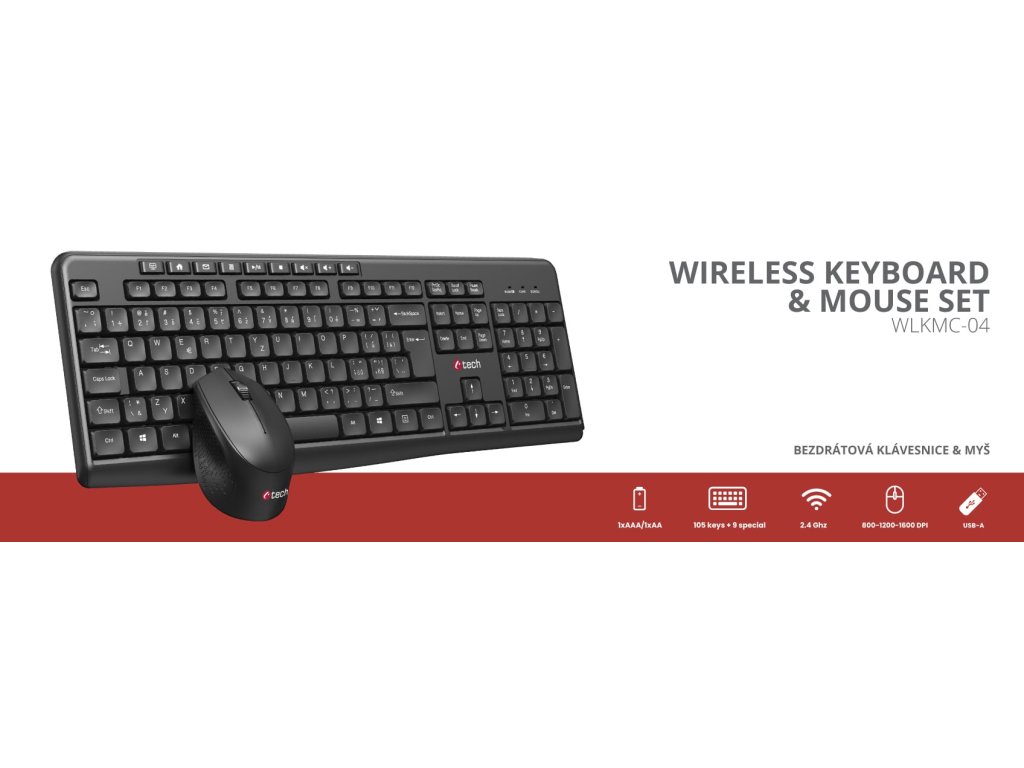 C-TECH WLKMC-04, bezdrátový combo set s myší, černý, USB, CZ/SK (WLKMC-04)