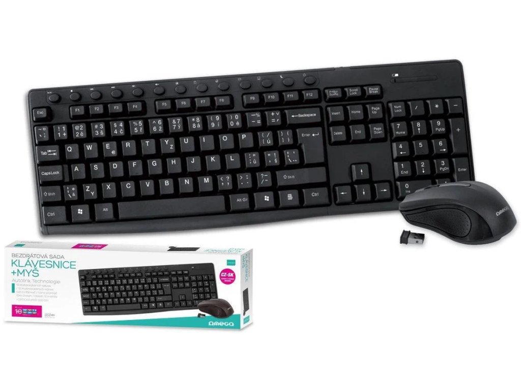 Sada CZ bezdrátové klávesnice a optické myši.Sada je vybavena jedním nano přijímačem USB, který spojuje myš i klávesnici.