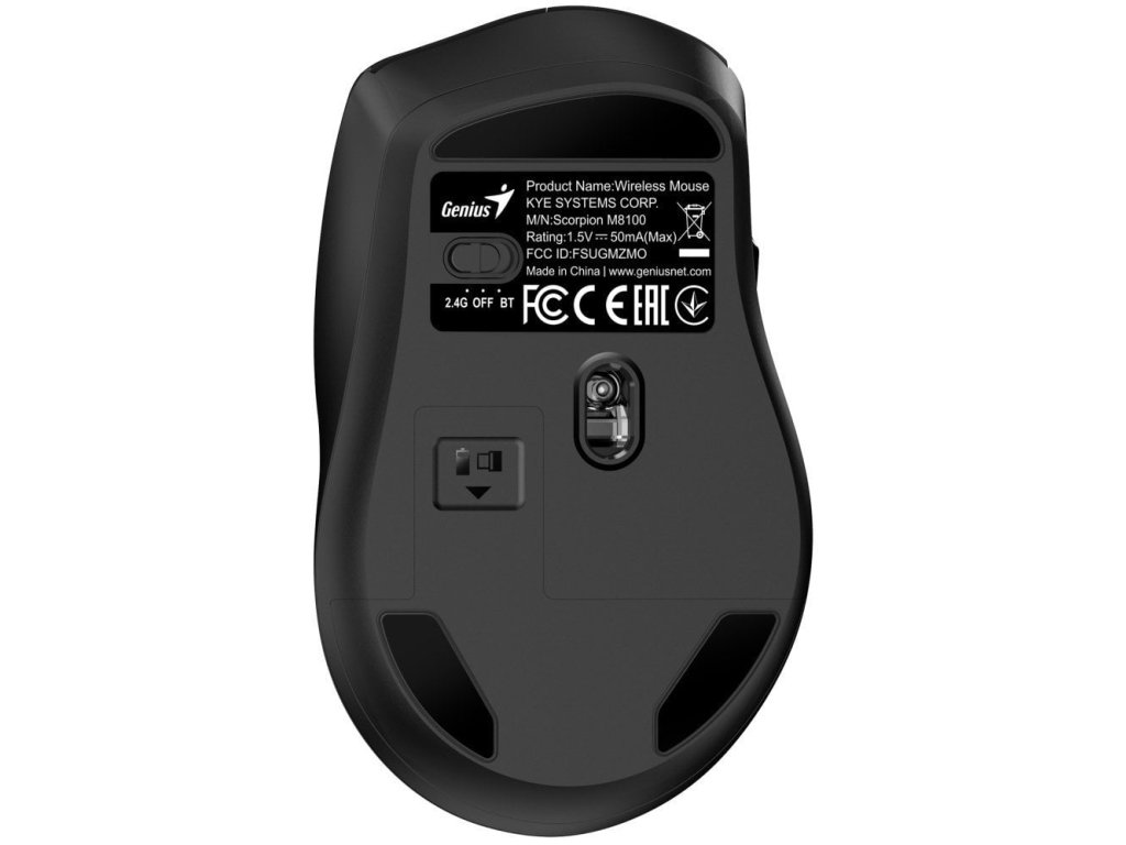 Genius Scorpion M8100 je ergonomická bezdrátová herní myš nabízející dva režimy připojení - Bluetooth 5.0 nebo 2,4GHz bezdrátové připojení přes USB přijímač. Díky optickému senzoru s nastavitelným rozlišením až 3200 DPI získáte přesné ovládání při hraní her i běžné práci na počítači.