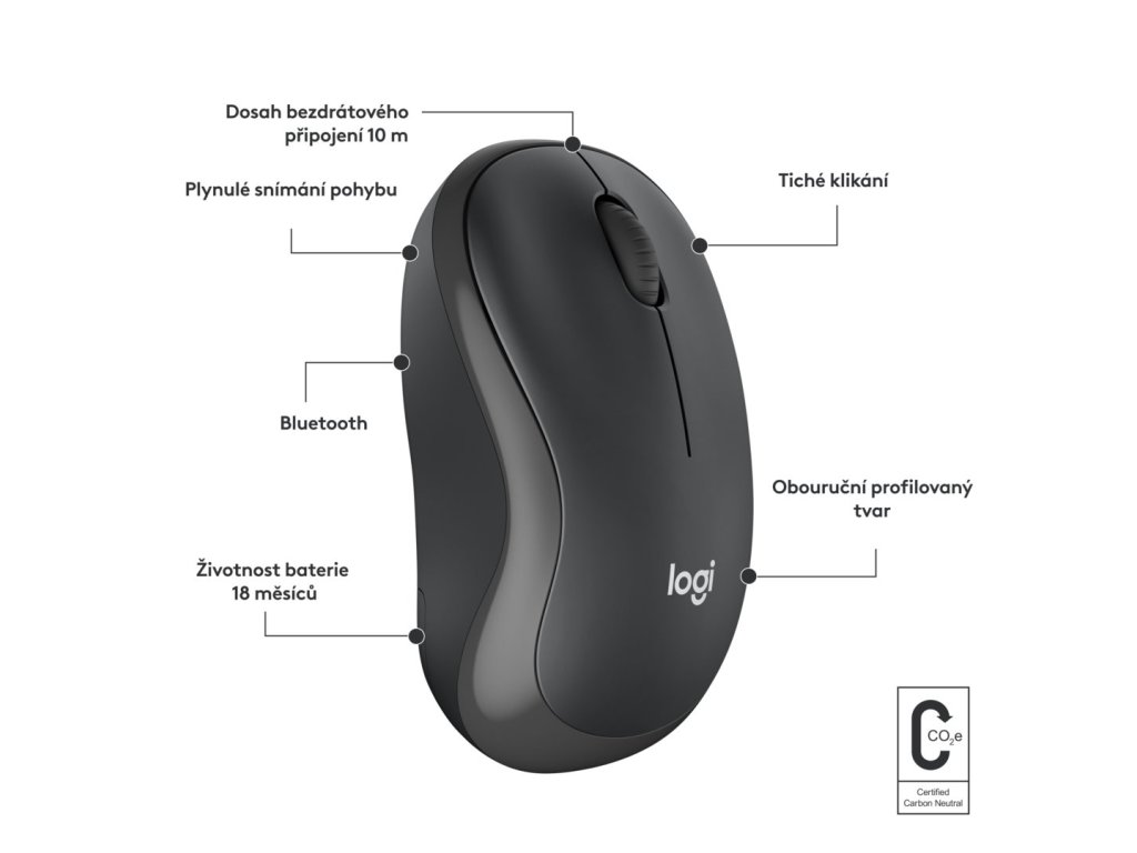 Snadné spárováníDíky rychlé a nenáročné bezdrátové technologii Bluetooth je připojení této tiché bezdrátové myši otázkou několika sekund – není vyžadován žádný adaptér ani port