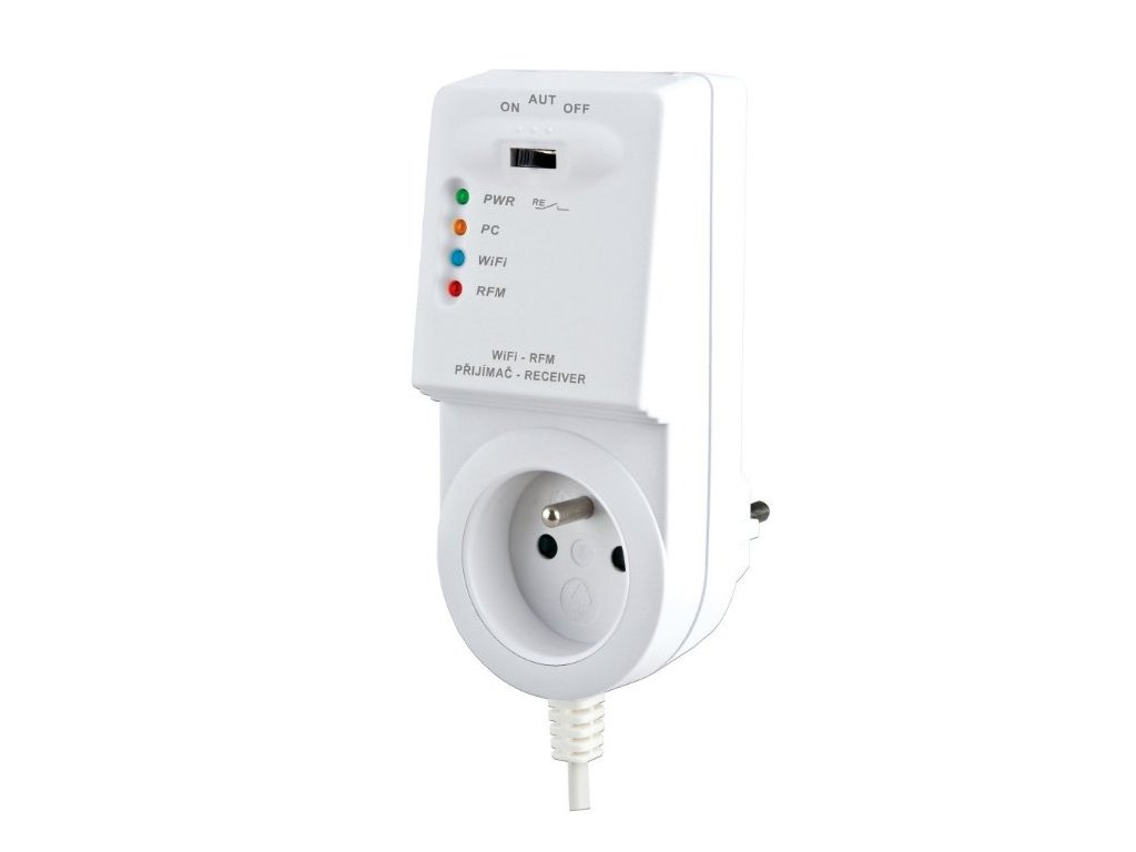 Přenosný vysílač s elegantním stojánkem. V přijímači je implementovaný WiFi modul s interní anténou. Je vhodný ke všem kotlům, které vyžadují bezpotencionální (beznapěťové) spínací kontakty (např. plynové kotle, elektro - kotle, oběhová čerpadla, termoelektrické pohony nebo klimatizační jednotky).