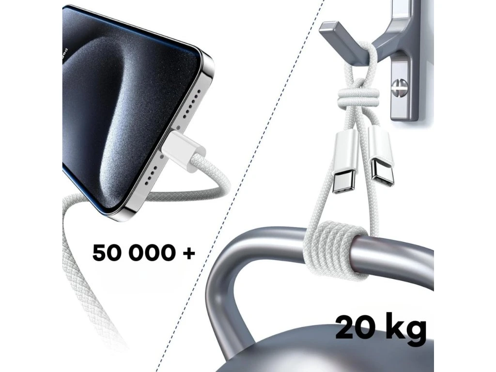 Opletený kabel USB C splňuje příslušné elektronické bezpečnostní normy a má zabudovanou technologii laserového svařování, která zajišťuje, že se kovové části nezlomí. Část s měděným jádrem je vyztužena UV lepidlem, které zabraňuje vypadávání pájeného spoje. Port USB-C prošel testem nosnosti 20 kg, má delší životnost a nikdy se nezlomí.
