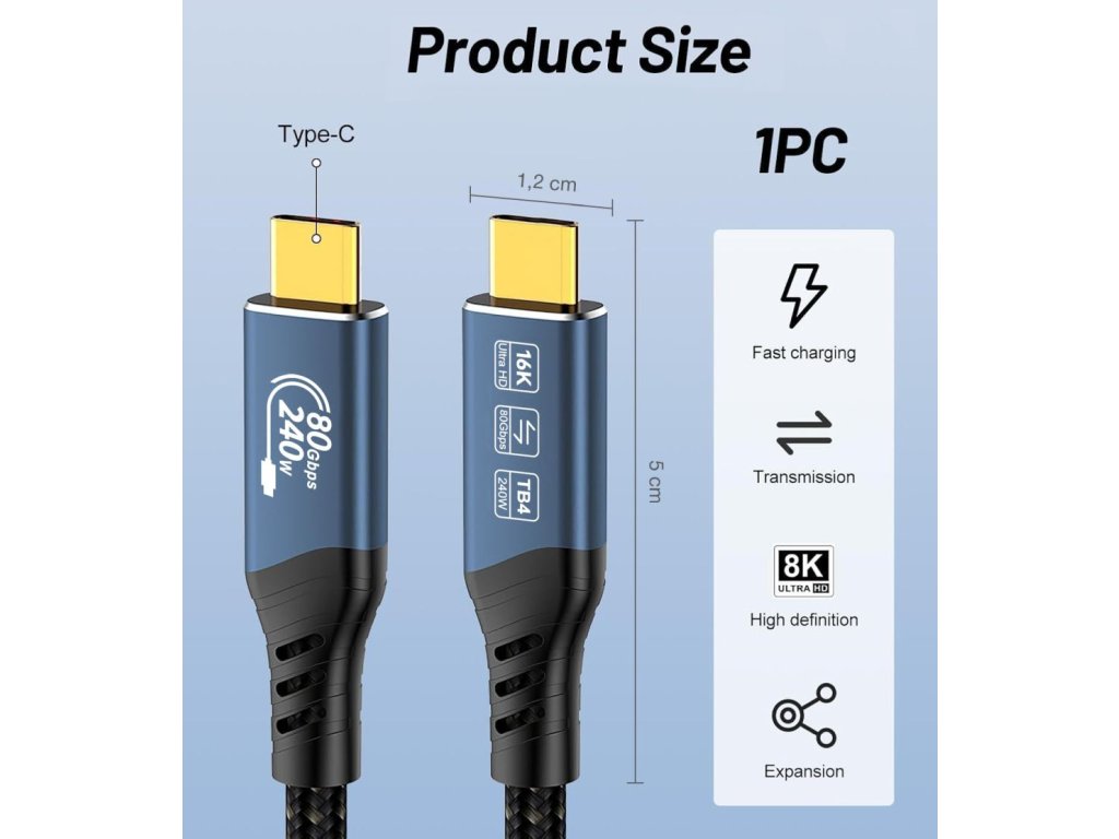- Rozlišení videa 16K@60Hz, až 80Gbps (podporuje DisplayPort Alt Mode 2.0)