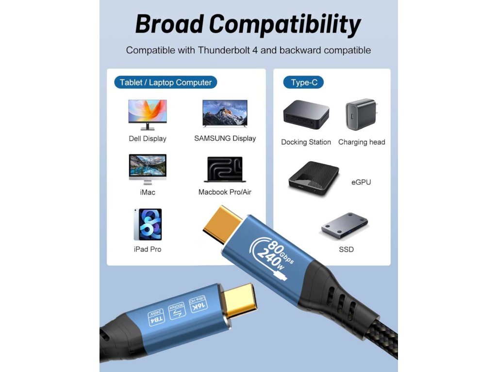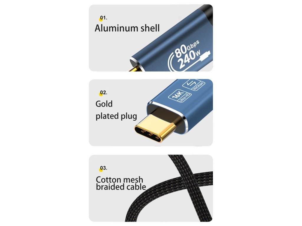 - Rozlišení videa 16K@60Hz, až 80Gbps (podporuje DisplayPort Alt Mode 2.0)