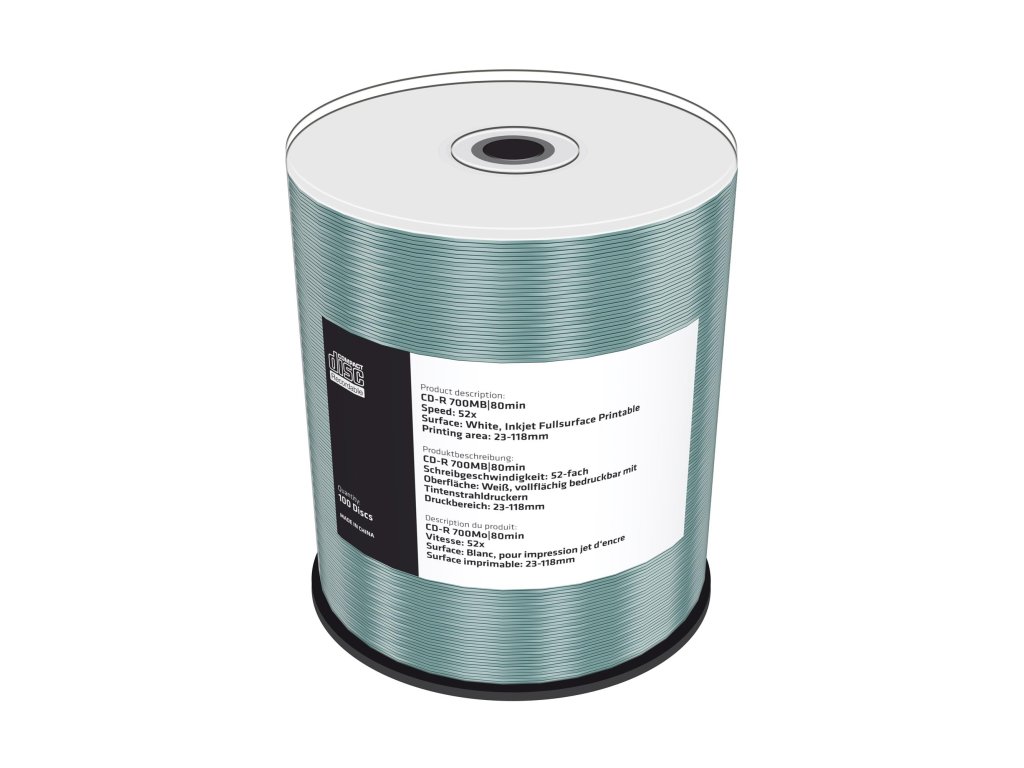 Kvalitní a cenově dostupná média CD-R značky MediaRange. Bílý celoplošný povrch k potištění na inkoustové tiskárně, poskytuje spolehlivý zápis dat s kapacitou až 700 MB při maximální rychlosti zápisu až 52x. Je to tedy ideální řešení běžného zálohování dat jako jsou zvukové záznamy, fotografie či další soubory. Média jsou balena po 100 kusech ve spindlu.Kapacita: 700MB