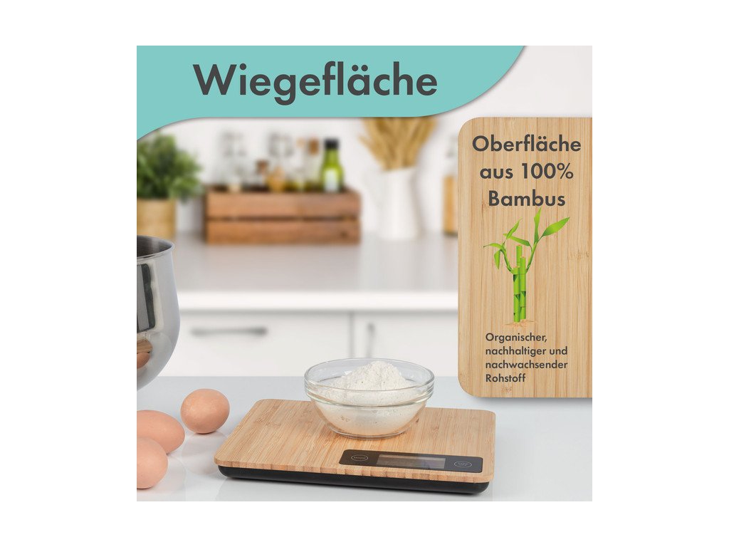Jestliže potřebujete praktického pomocníka do kuchyně, který vám pomůže s přípravou pokrmů, dejte šanci kuchyňské váze ProfiCook. Váha je s hladkou plochou, která umožňuje přímé pokládání surovin ke zvážení. Nadchnou vás zajímavé funkce, například TARE a automatické vypnutí. Pro její výrobu výrobce zvolil oblíbený bambus, jenž je velmi odolný. Kromě samotné váhy je v balení rovněž návod. Aby vše správně fungovalo, jsou zapotřebí 3 AAA baterie. Váha do kuchyně ProfiCook má rozměry 2,3 × 24 × 19 cm (vך×h).Provoz na baterie: 3 x 1,5 V AAA (baterie nejsou součástí balení)