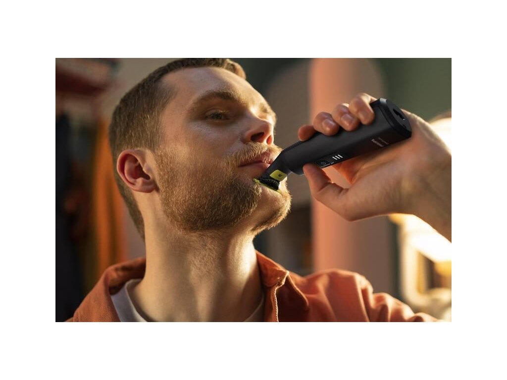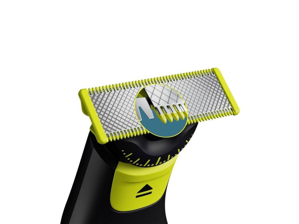 Philips OneBlade je vybaven revoluční technologií pro péči o tvář. Dokáže oholit vousy všech délek. Díky systému dvojité ochrany – klouzavé povrchové úpravě v kombinaci se zaoblenými špičkami – je holení snadnější a pohodlnější. Technologie holení sestává z rychle se pohybujícího ostří (12 000 pohybů za minutu), které je účinné i na delších vousech.