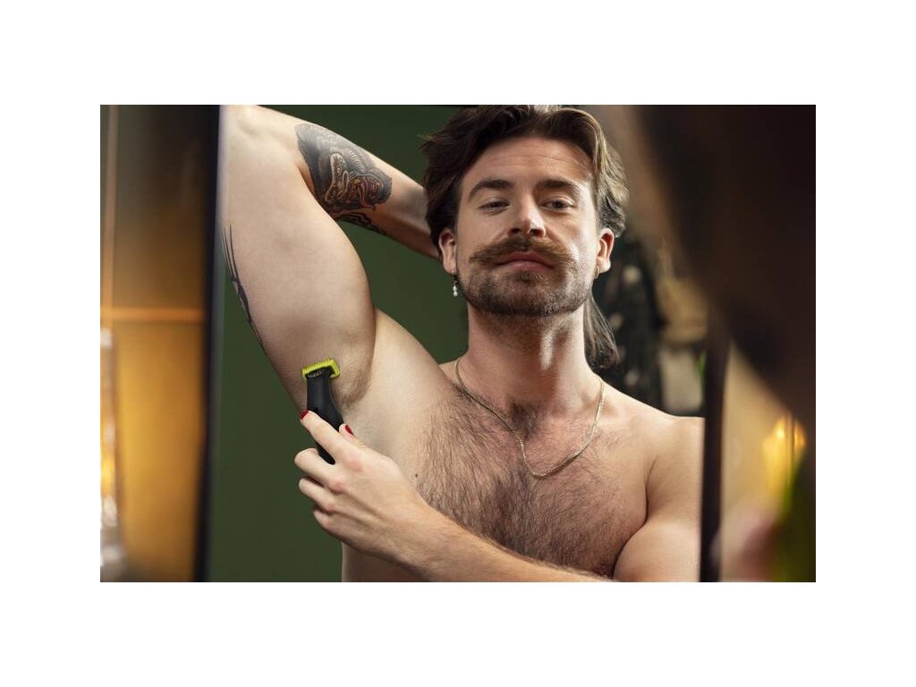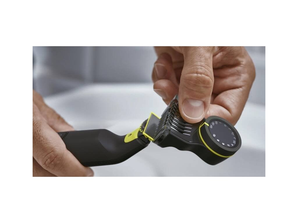 OneBlade je zcela vodotěsný (IPX7), takže se snadno čistí: stačí opláchnout pod tekoucí vodou. Můžete použít jak na suché, tak na mokré holení, dokonce i ve sprše, jak vám to vyhovuje. Pěna na holení není potřeba.