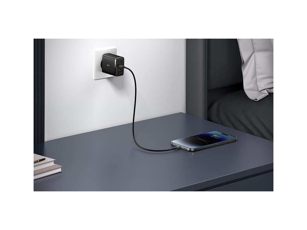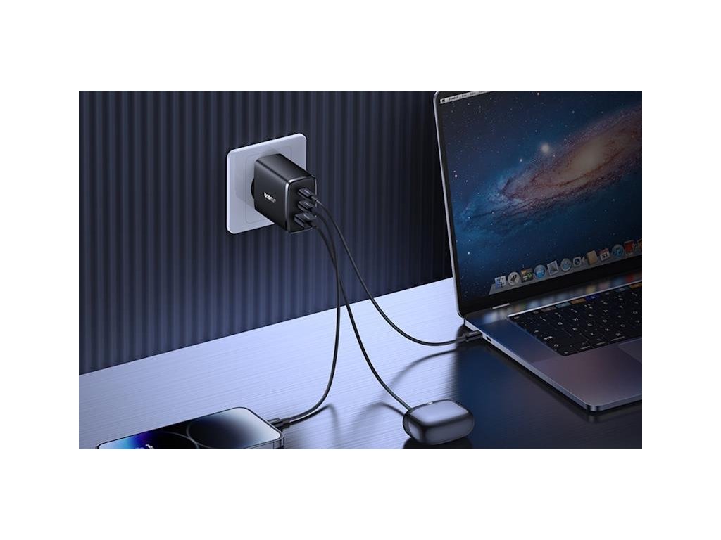 Baseus Cube Pro 65W – výkonná GaN nabíječka pro všechna zařízeníSíťová nabíječka Baseus Cube Pro 65W umožňuje rychlé a efektivní nabíjení až tří zařízení současně. Díky vysokému výkonu 65 W a moderní GaN technologii (Gallium Nitride) zvládne bez problémů napájet nejen chytré telefony a tablety, ale také notebooky.