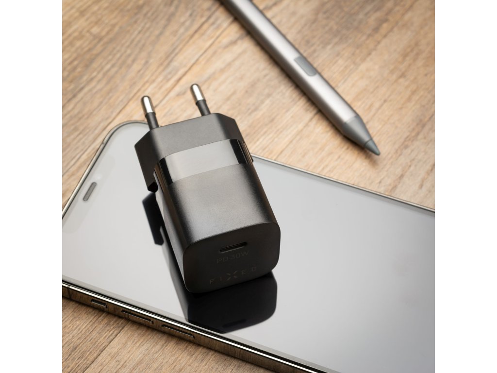 Síťová nabíječka FIXED Mini s USB-C výstupem a podporou PD, 30W, černá (FIXC30M-C-BK)