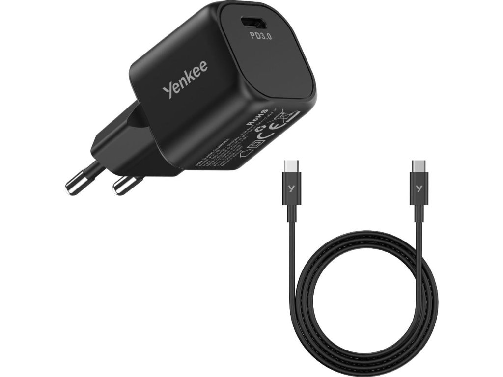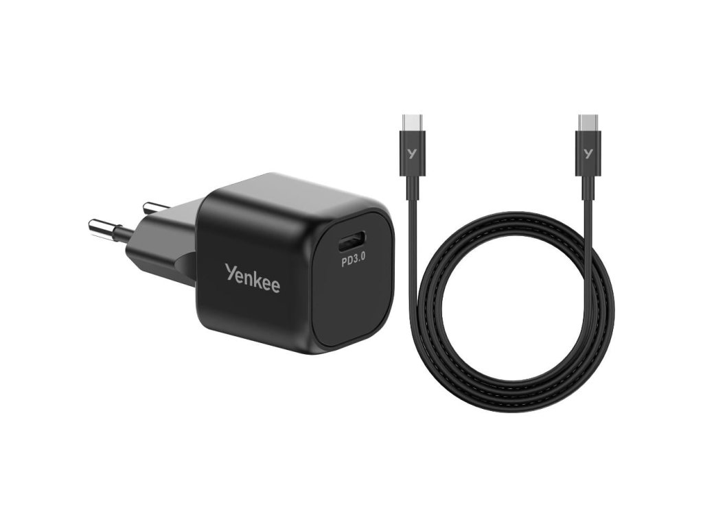 Set nabíječky a USB-C kabelu VOLT YAC G35BK od značky Yenkee spolehlivě nabije vaše zařízení – kdykoli a kdekoli. Díky technologii GaN (Gallium Nitride) má nabíječka až o 30 % menší tělo než srovnatelné adaptéry s výkonem 35 W. Je vybavena oboustranným USB-C konektorem a podporuje standard Power Delivery 3.0. Bez problémů nabijete svůj mobilní telefon, tablet, sluchátka či powerbanku. Inteligentní čip automaticky přizpůsobí výstupní výkon připojenému zařízení a ochrání ho před přetížením, přepětím nebo zkratem.