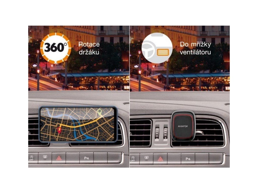 Magnetický držák pro mobilní telefony do auta ve velmi elegantním carbon provedení. Díky integrovanému silnému magnetu lze zafixovat telefon prakticky jakýchkoliv rozměrů. Pomocí šetrného, spolehlivého utahovacího mechanismu, lze snadno připevnit k ventilační mřížce bez rizika jejího poškození.Držák disponuje možností natočení mobilního telefonu v plném rozsahu 360°.