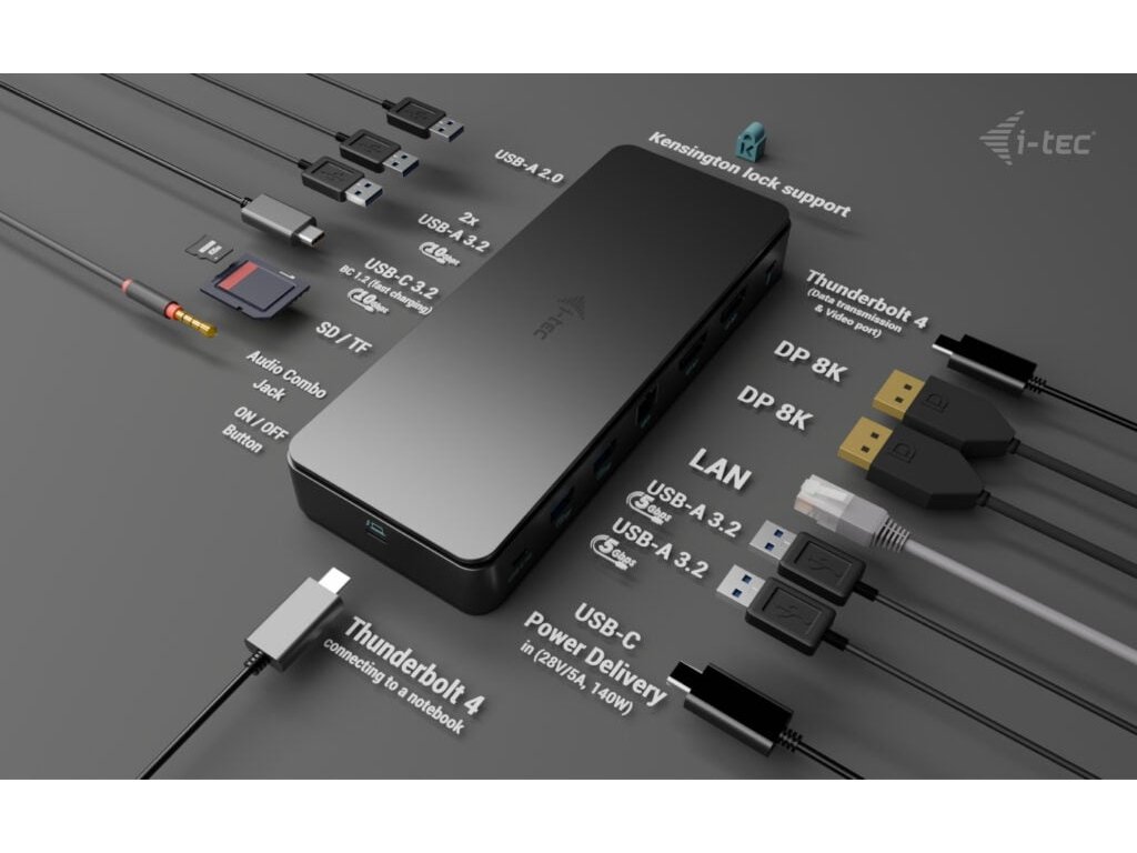 i-tec Thunderbolt 4 Dual Display Docking Station, Power Delivery 92W (TB4DUALDPDOCKPDPRO)