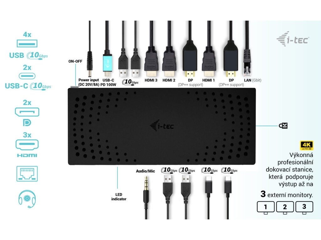 • Klonování MAC adresy: ano (za použití software i-tec Docker Pro)