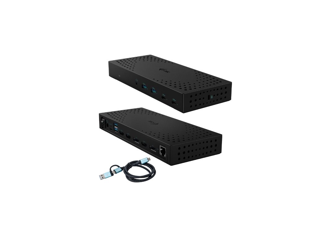 Výkonná profesionální dokovací stanice Gen 2, která podporuje výstup až na tři externí monitory ve vysokém rozlišení až 4K. Dokovací stanici lze použít prakticky se všemi notebooky, protože podporuje připojení ke všem běžným portům: 3.0, USB-C a Thunderbolt“ 3/4 a zároveň podporuje všechny běžné současné operační systémy. Připojení ke třem monitorům však bude možné pouze v případě, že je notebook vybaven portem Thunderbolt“ 3/4 nebo portem USB-C, který podporuje přenos videa (režim USB-C DP Alt). V případě připojení k notebooku s portem USB 3.0 budou podporovány pouze dva monitory.