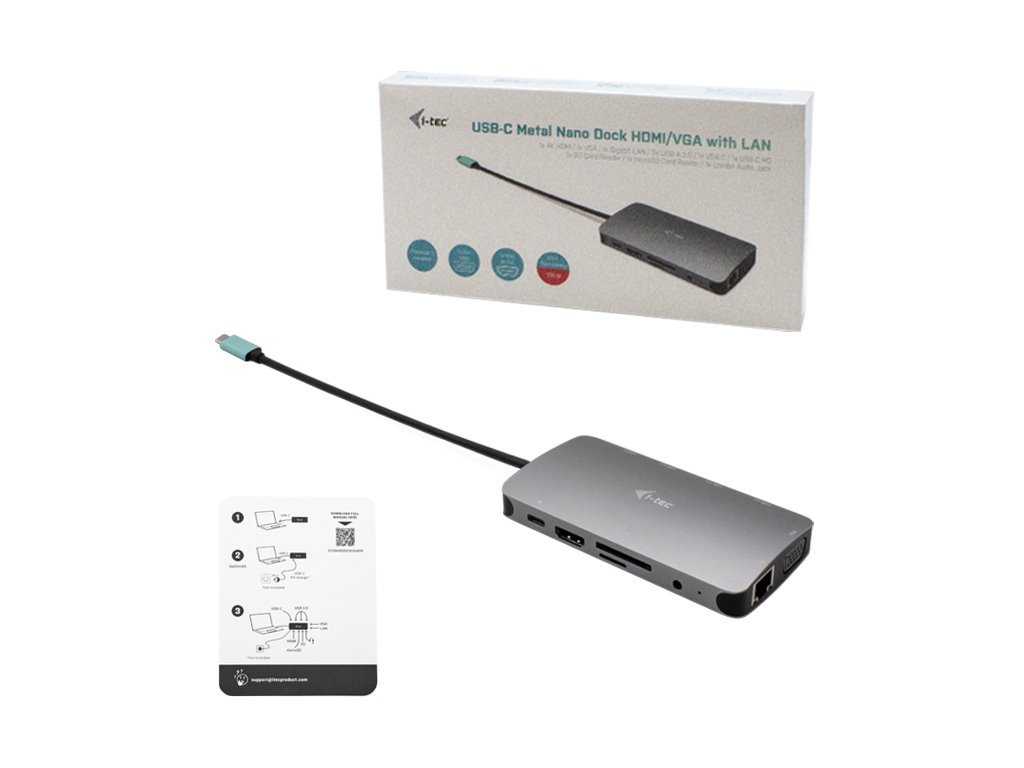 I-TEC USB-C Metal Nano Dock HDMI/VGA with LAN + Power Delivery 100 W (C31NANODOCKVGAPD)
