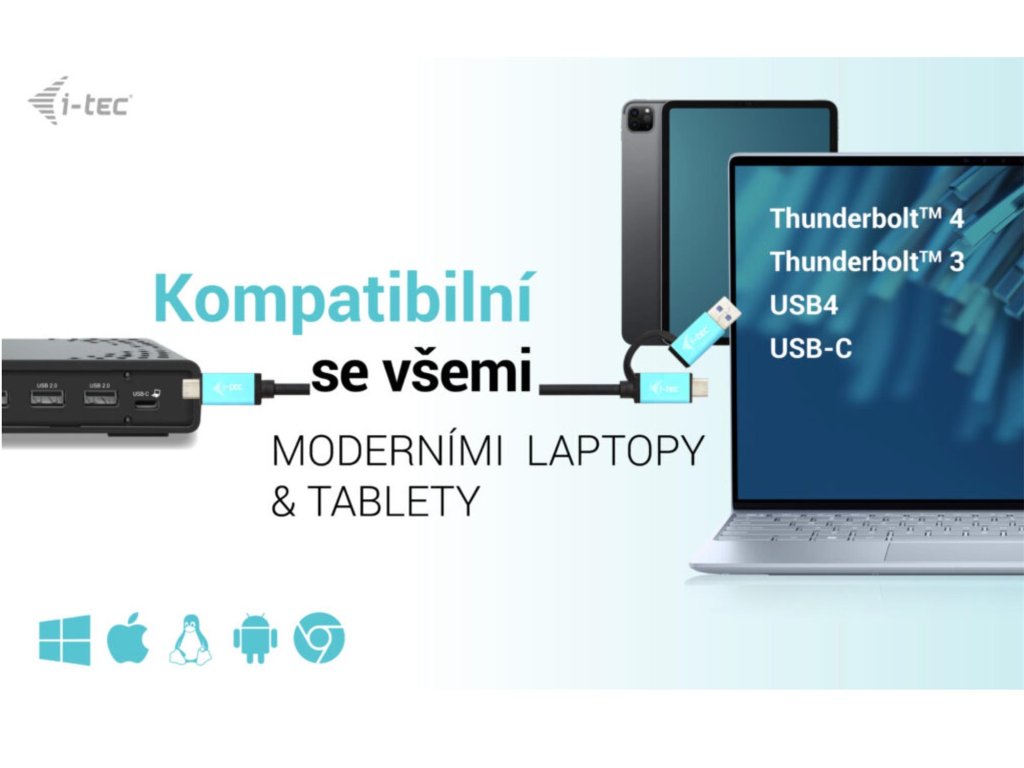 • Dokovací stanice je kompatibilní se všemi moderními notebooky vybavenými porty USB-C, USB4 nebo Thunderbolt™ 3/4.