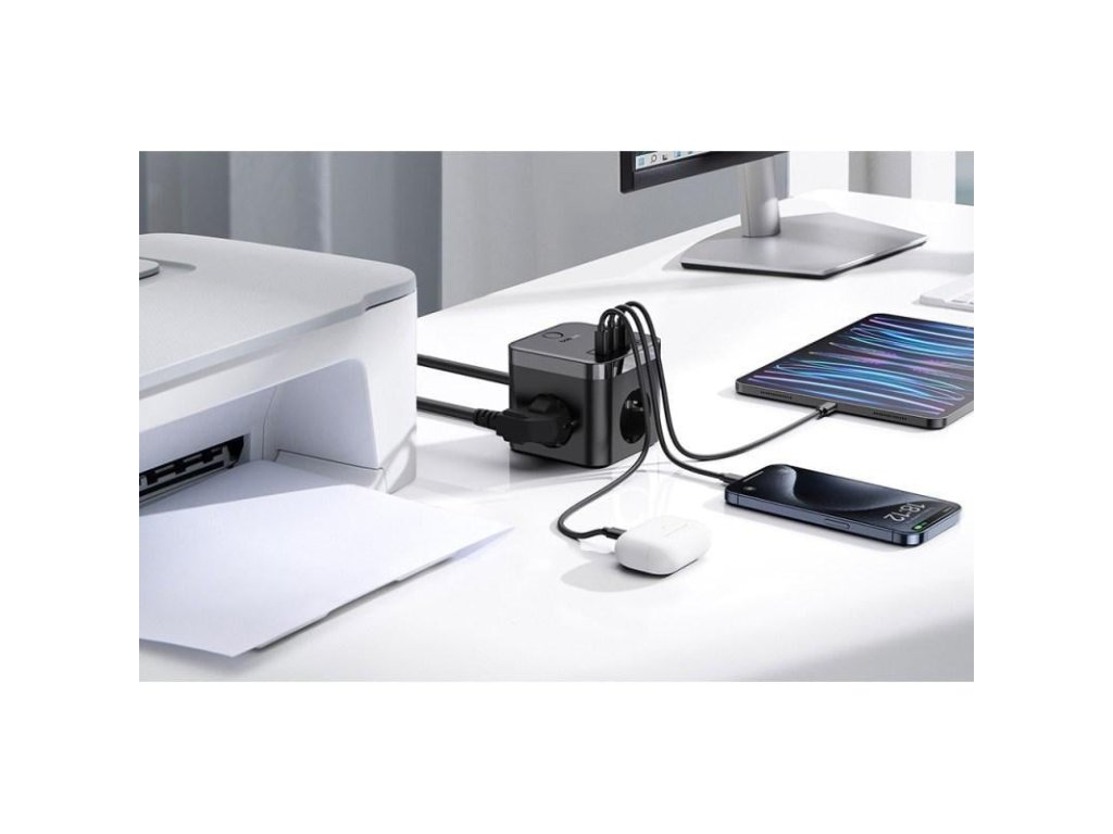 Baseus PowerCombo Cube je navržen pro uživatele, kteří potřebují efektivní a bezpečné napájení více zařízení současně. Tento kompaktní prodlužovací kabel nabízí 3 AC zásuvky, 2 USB-C a 2 USB-A porty, což umožňuje nabíjet a napájet až sedm zařízení současně. Díky celkovému výkonu 30 W a pokročilé technologii GaN6 zajišťuje rychlé nabíjení a stabilní přenos energie pro širokou škálu elektroniky, včetně smartphonů, tabletů, notebooků a dalších zařízení.Klíčové vlastnosti