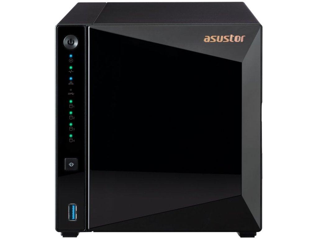 Asustor Drivestor 4 Pro Gen2 (AS3304T v2)Cenově efektivní NAS ideální pro domácí použití nabízí atraktivní šasi, které z něj činí elegantní doplněk každého prostoru. Zařízení pohání čtyřjádrový procesor 1,7 GHz s pamětí DDR4 o velikosti 2 GB. Síťové připojení zajišťuje jeden 2,5 GbE RJ-45 port a k dispozici jsou také tři USB konektory. Pro ukládání dat jsou připraveny čtyři šachty na disky o velikosti až 18 TB. Operační systém ADM nabízí intuitivní uživatelské prostředí pro snadnou správu a sdílení souborů napříč platformami. Samozřejmostí je 256bitové šifrování AES. Tento model je vybaven zdrojem s výkonem 90 W.