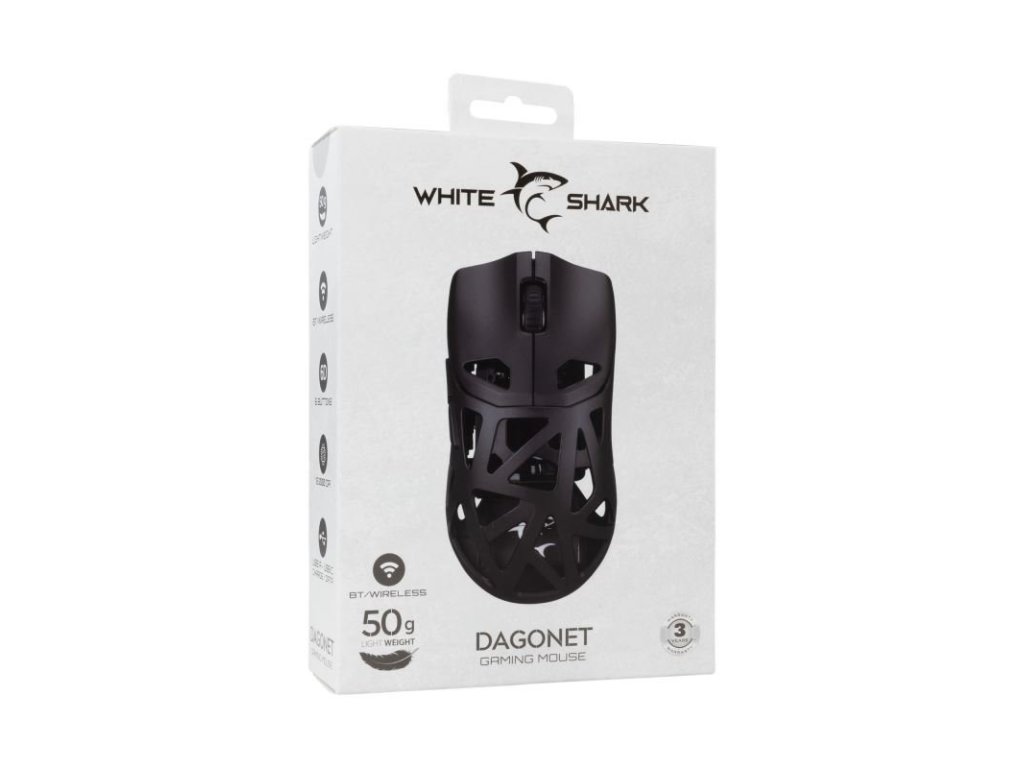White Shark herní myš DAGONET - Extrémně lehká herní myš s trojím připojením a DPI až 24 000.White Shark DAGONET je bezdrátová herní myš navržená pro hráče, kteří hledají rychlou odezvu, nízkou hmotnost a maximální flexibilitu připojení.