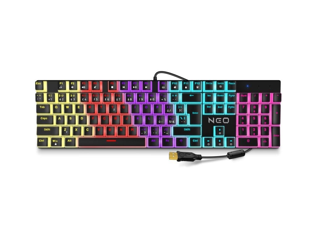 Profesionální mechanická klávesnice z řady NEO series pro hráče počítačových her v českém layoutu s celkem 12 módy barevného rainbow podsvícení a čtyřstupňovou regulací intenzity podsvícení. K dispozici je 12 multimediálních kláves.