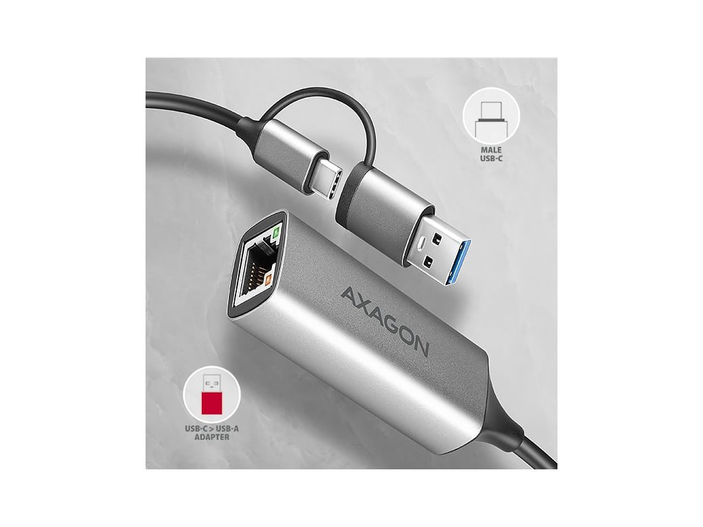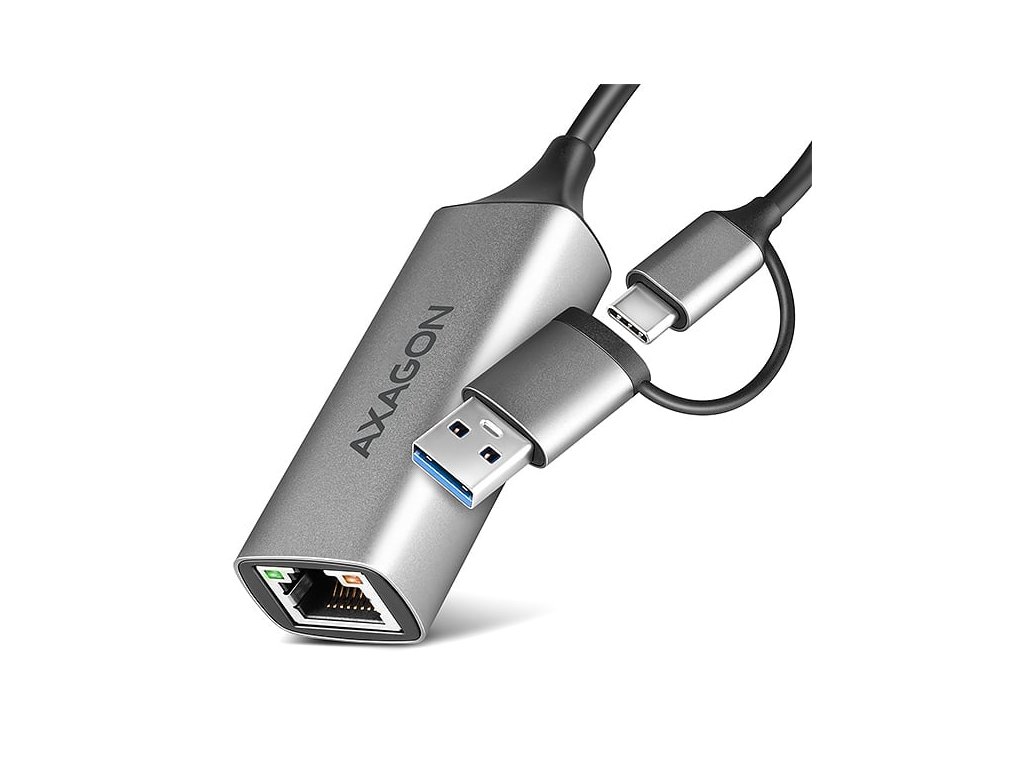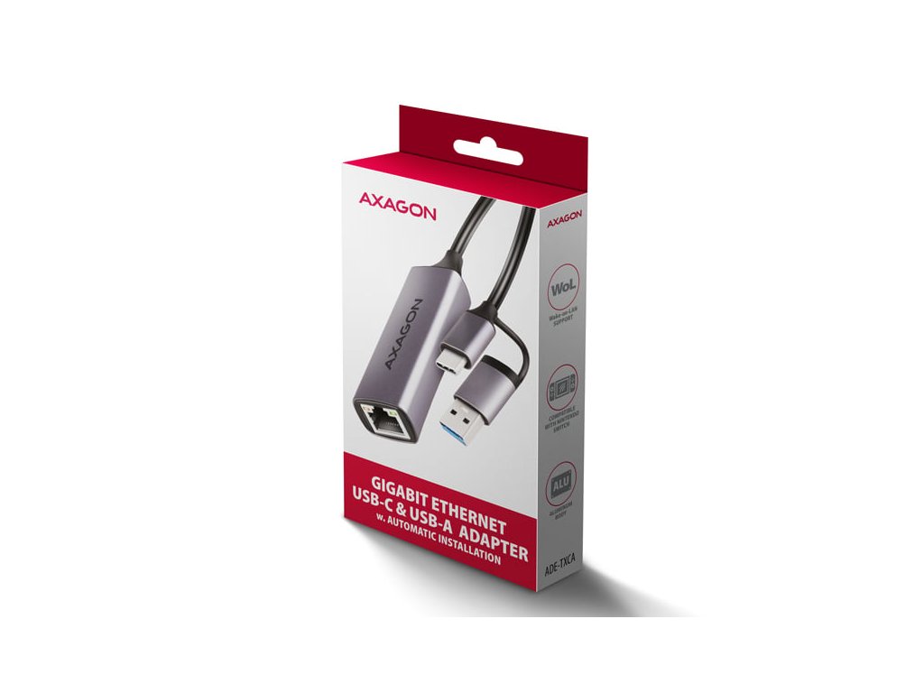 AXAGON ADE-TXCA, USB-C + USB-A 3.2 Gen 1 - Gigabit Ethernet síťová karta, Asix AX88179, auto instal (ADE-TXCA)