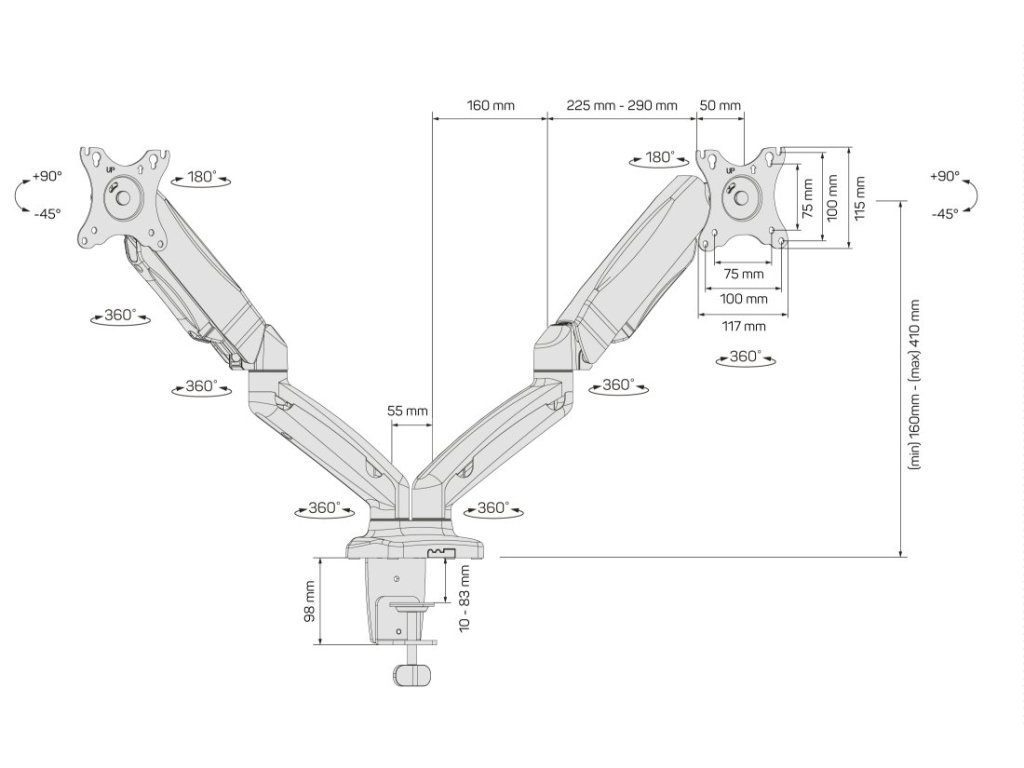 Maximální variabilita díky 6 pohyblivým kloubům pro každý monitor (celkem 12 pohyblivých kloubů)