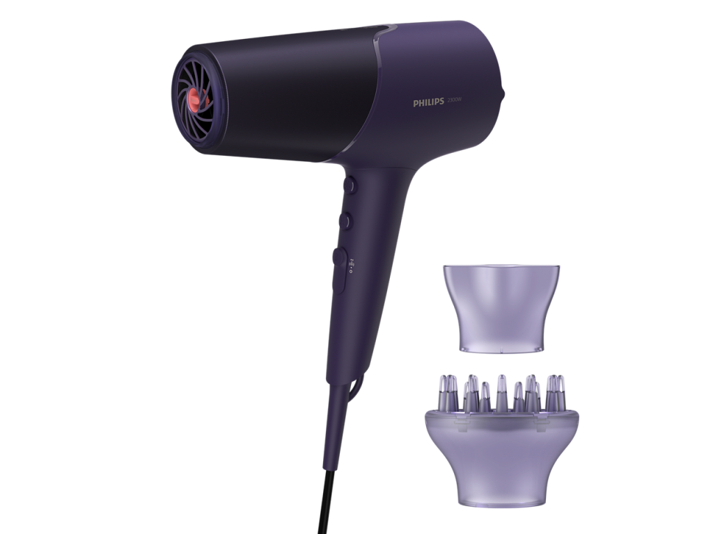 Vysoušeč vlasů Hair Dryer Series 5000, 2300W se šesti flexibilními nastaveními rychlosti a teploty pro dokonalou kontrolu.Senzor ThermoShield.