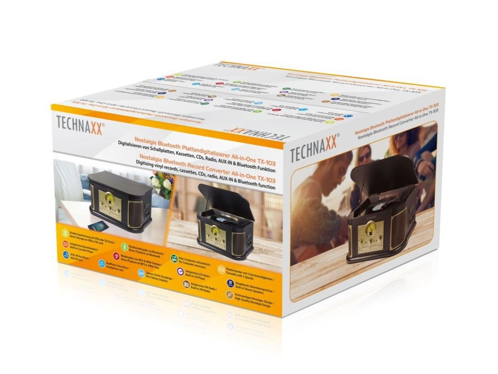 Technaxx Bluetooth přehrávač CD/gramofon/kazeta, konvertor – převod do MP3 formátu (TX-103) (4755)