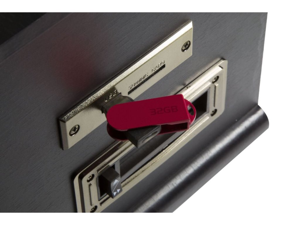 Digitalizujte své staré gramofonové desky, CD a FM přímo na USB flash disk bez použití počítače!Digitalizovat vinylové desky/kazety/CD/rádio nebo AUX–IN na USB nebo SD kartu až do kapacity 32GB