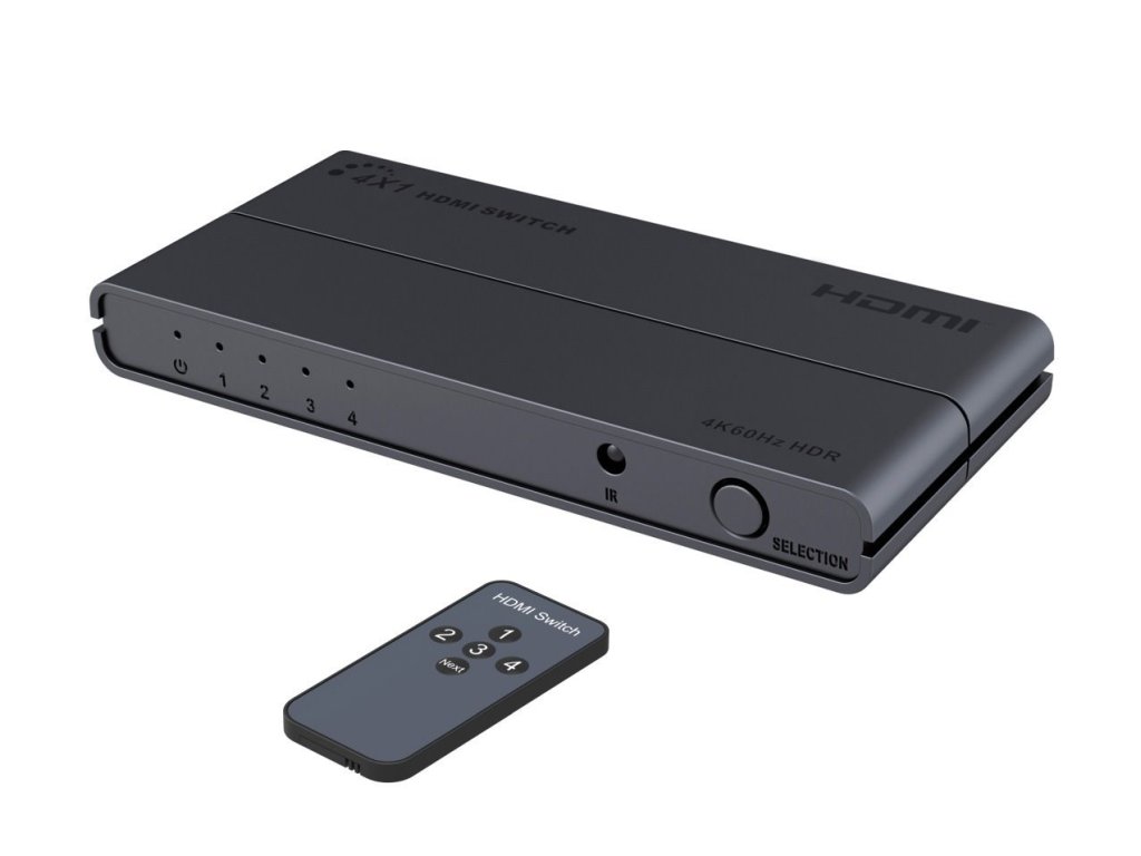 Popis produktu:PremiumCord HDMI switch 4:1 s podporou rozlišení 4Kx2K@60Hz, 1080P, HDR, s ovládáním tlačítkem a dálkovým ovladačem