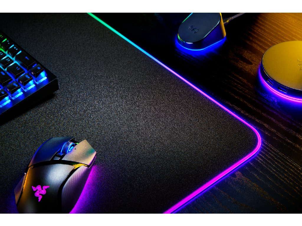 Velká podložka poskytuje dostatek prostoru pro klávesnici a myš a zároveň poskytuje maximální RGB osvětlení pro vaše nastavení.