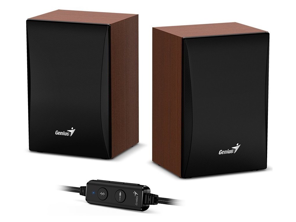 Genius SP-HF380 – dřevěné multimediální reproduktoryKompaktní reproduktory Genius SP-HF380, které dosahují celkového výkonu a jsou tak vhodné pro každodenní ozvučení běžných multimédií na vašem PC nebo notebooku. Vzhledem k přítomnosti 3.5mm konektoru jsou reproduktory kompatibilní také s TV či smartphonem skrze bezdrátové rozhraní Bluetooth 5.0, pro napájení slouží USB port. Dřevěná konstrukce propůjčuje stolním reproduktorům elegantní vzhled a současně se podílí také na přirozeném podání zvuku. Reproduktory Genius SP-HF380 se vyznačují nízkou váhou a malými rozměry, takže je snadno umístíte na jakékoli místo na stole.
