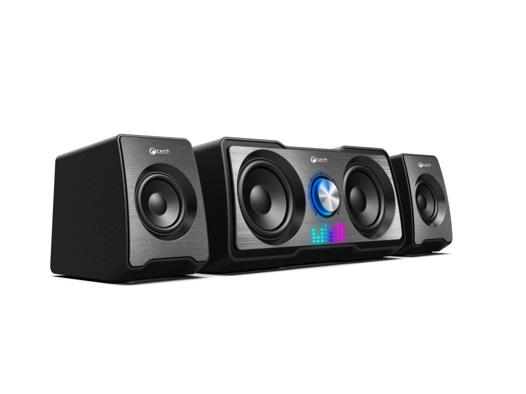 Kompaktní PC reproduktory C-tech SPK-16BK 2.2 vám zprostředkují kvalitní zvuk s výkonem 16W a frekvenčním rozsahem 150-20kHz. Díky unikátní kombinaci měničů 2+2 je reprodukovaný zvuk bohatší a více dynamický, takže si jej využijete nejen při poslechu oblíbených skladem, ale i při hraní her. O jedinečnou atmosféru při poslechu hudby se postará automatické RGB podsvícení. K ovládání hlasitosti poslouží regulátor nacházející se na jednom z reproduktorů. Tento regulátor slouží k zapnutí a vypnutí zařízení. Připojení soustavy k zařízením zajistí kabel s 3,5mm jackem, napájení zase USB kabel.Specifikace :