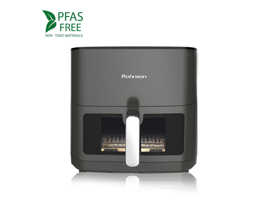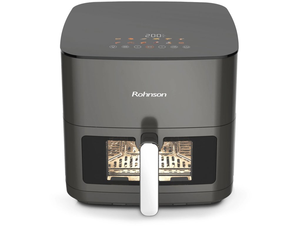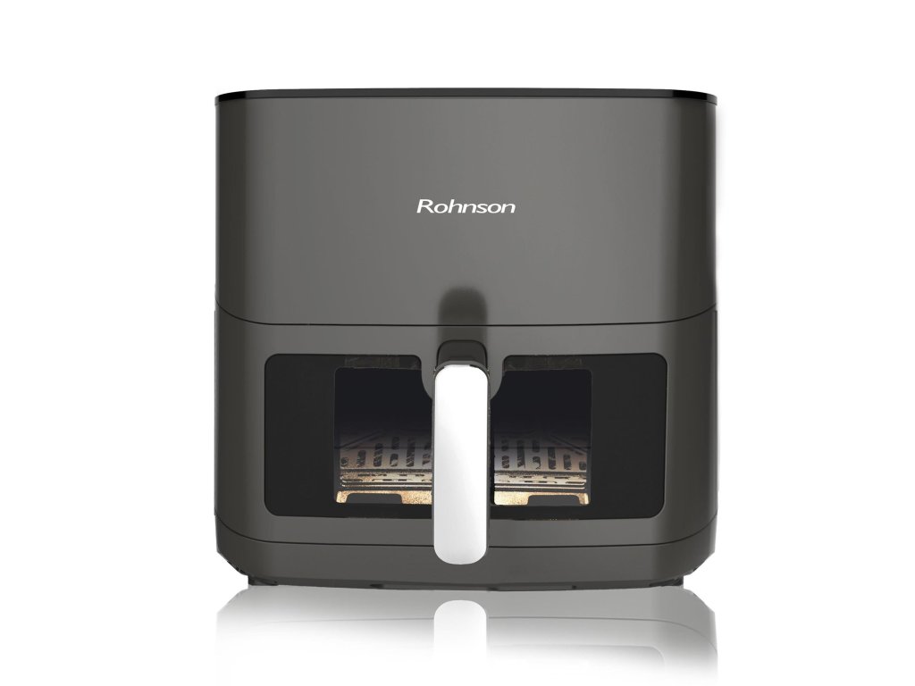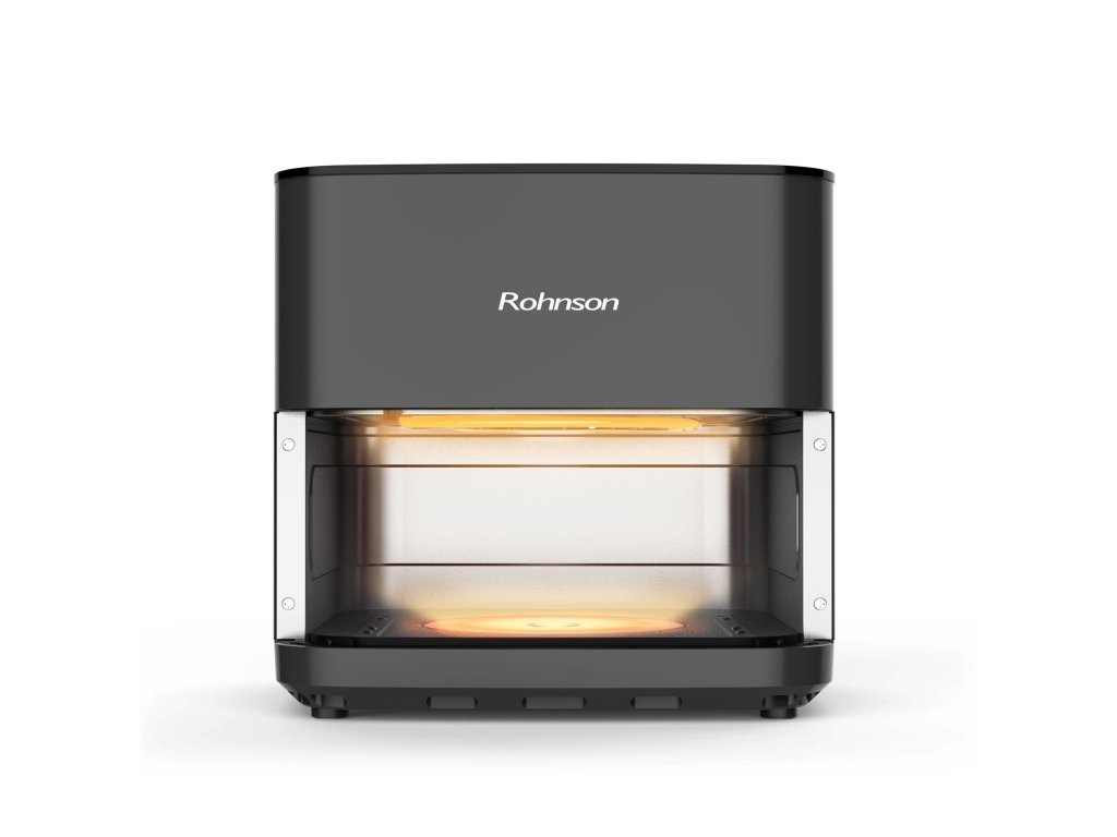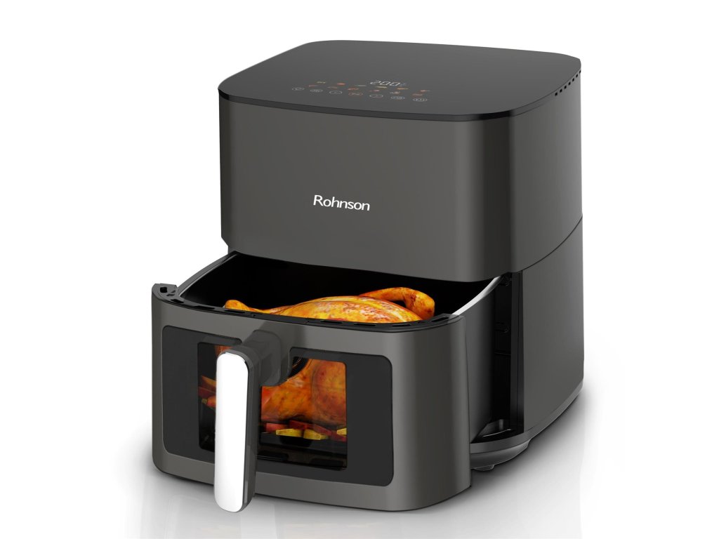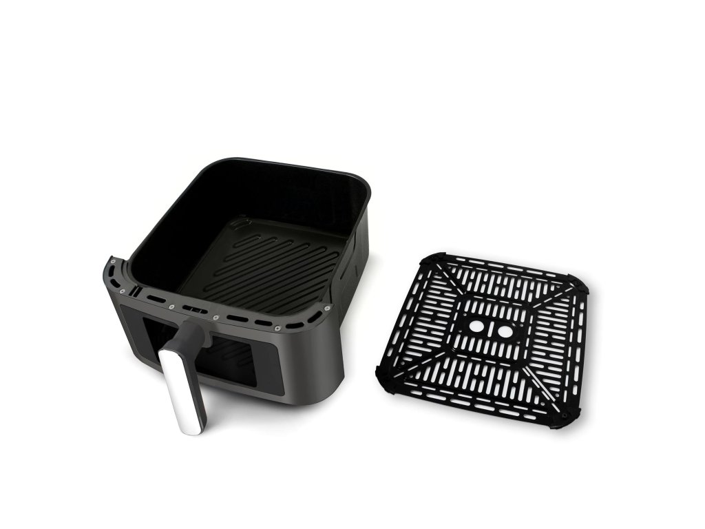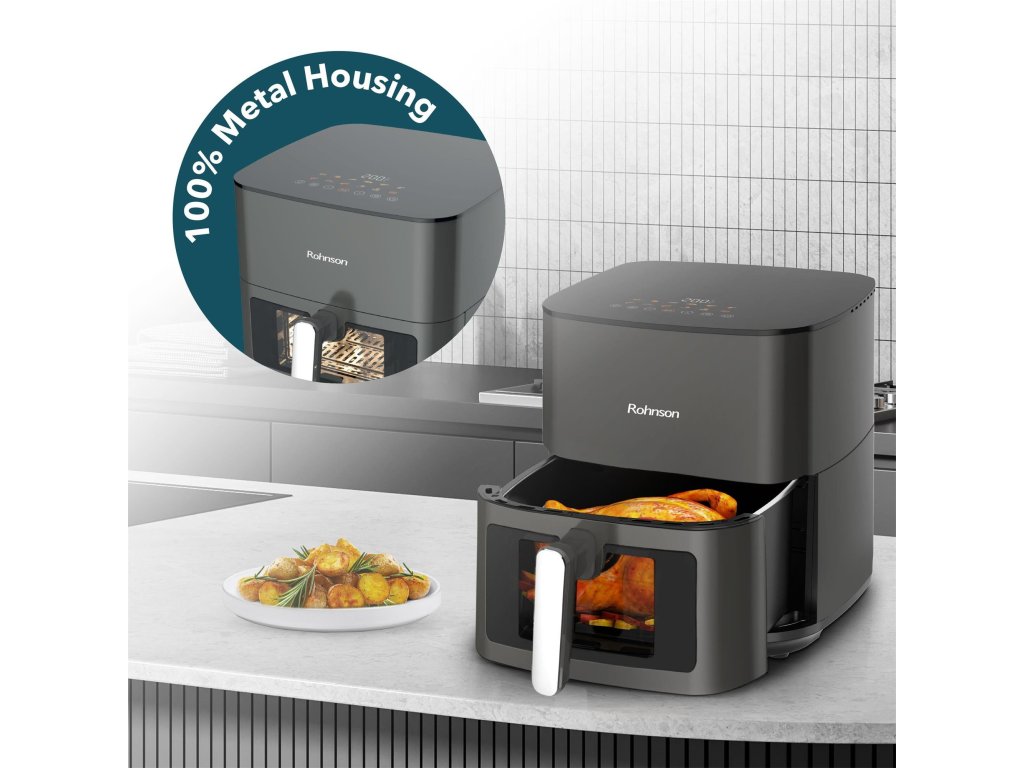 Horkovzdušná fritéza s horním a spodním topným tělesem a kovovým pláštěm