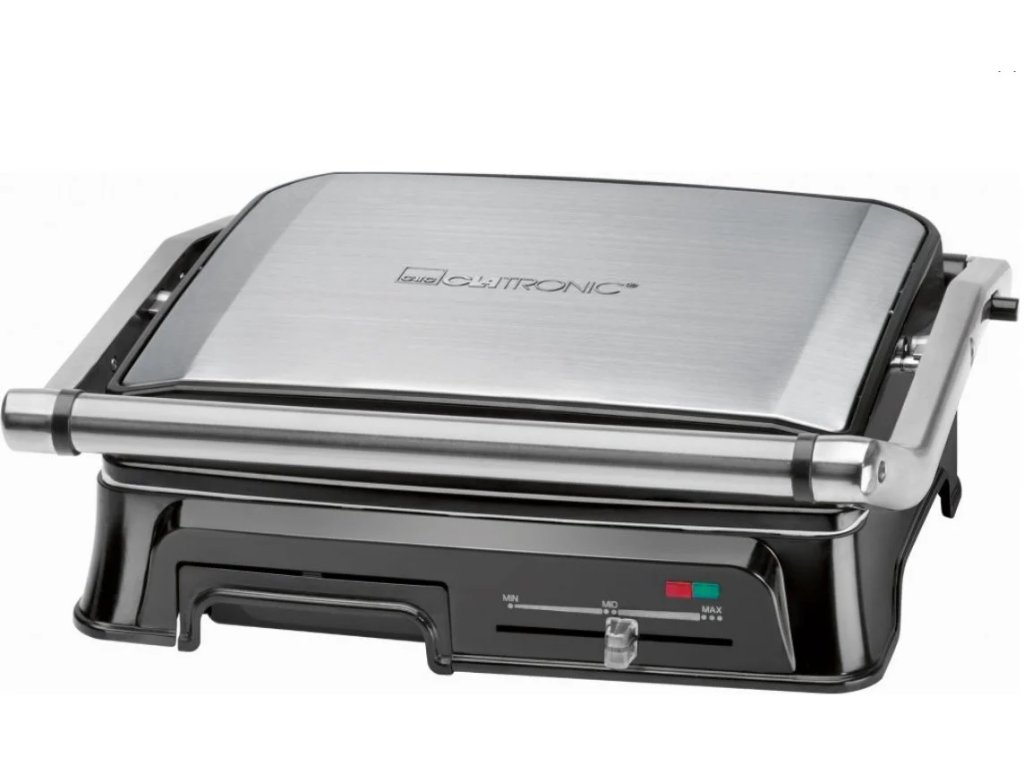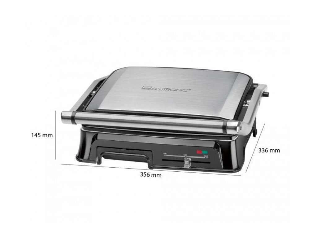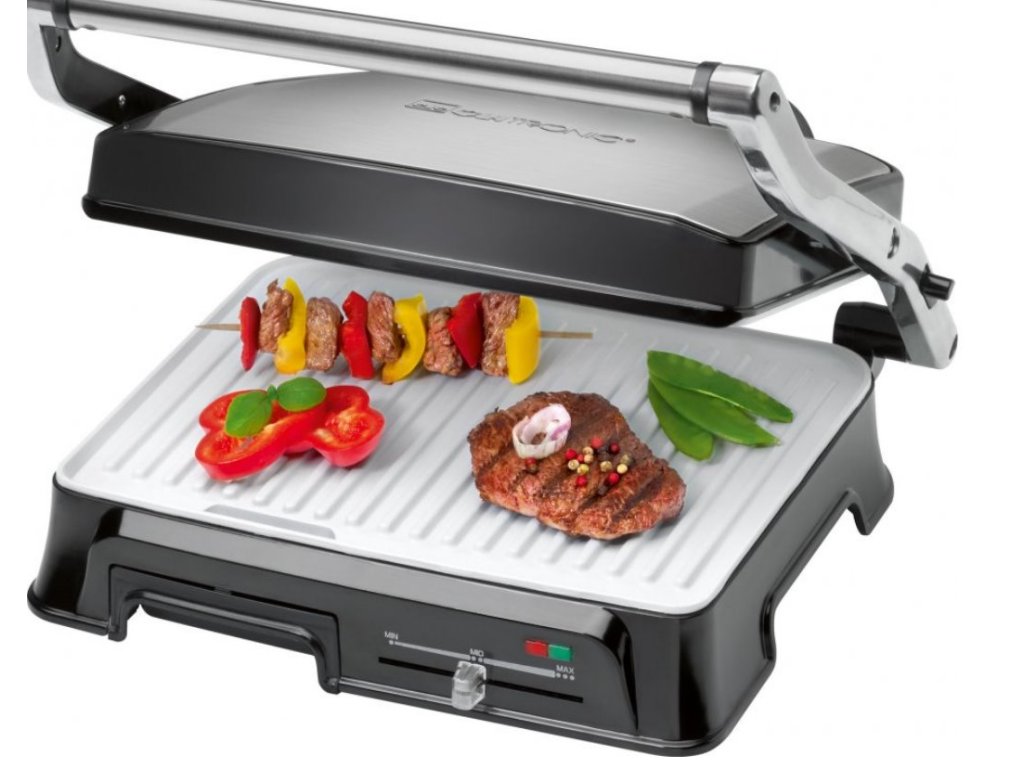 Výkon dosahuje až 2 000 W. Možnost otevření grilu o 180 ° umožňuje grilování na extra velké ploše. Pro odvádění přebytečného tuku do odkapávacího zásobníku je gril vybaven speciálními drážkami, což usnadňuječištění a grilování je tak zdravější. Teplota grilování se nastavuje pomocí plynule nastavitelného termostatu. Grilovací plochy jsou keramické, odolné proti poškrábání a s hlubokými drážky pro velký grilovací efekt.