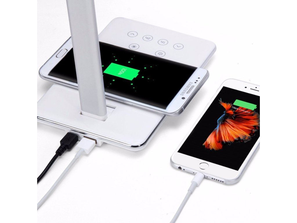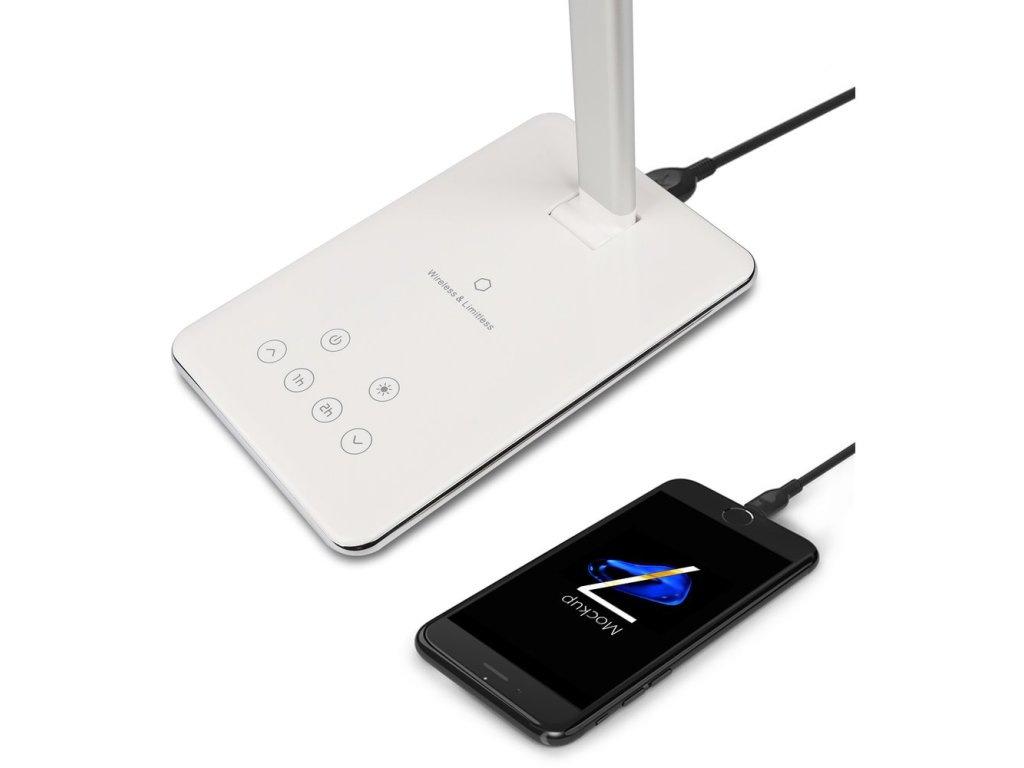 Atraktivní stolní lampa s funkcí bezdrátového (indukčního) dobíjení dle standardu Qi(Aktuálně podporovaná zařízení: HTC E9, LG NEXUS 5, Nokia 920, iPhone 8. Iphone X,Xr,Xs, Apple Watch)
