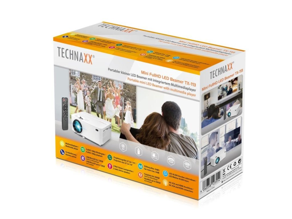 VlastnostiFullHD 1080p projektor s výkonnou 1800 lumenovou LED lampou (100 ANSI lumen) Nativní rozlišení: 800×480