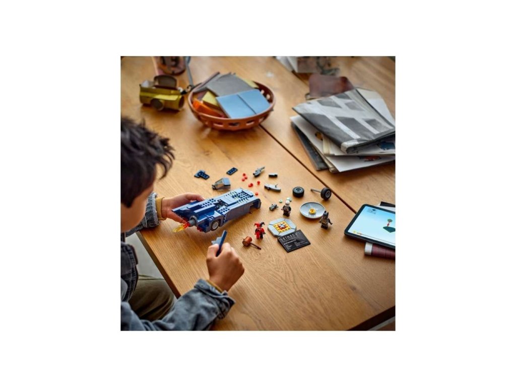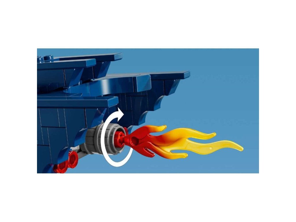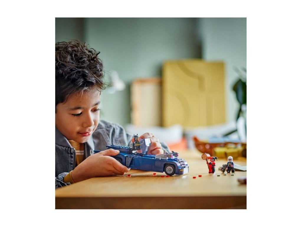 LEGO® Batmobil se však hodí i pro akční hru. Použij jeho odnímatelné odpalovače a otevři dveře do kokpitu. Uvidíš sedadlo řidiče a ovládací panel. A čeká na tebe ještě jedno překvapení - když se Batmobil pohybuje, otáčí se plamen ve výfuku. Dobrodružsví s Batmanem, Harley Quinnem a Mr. Freezem právě začíná.