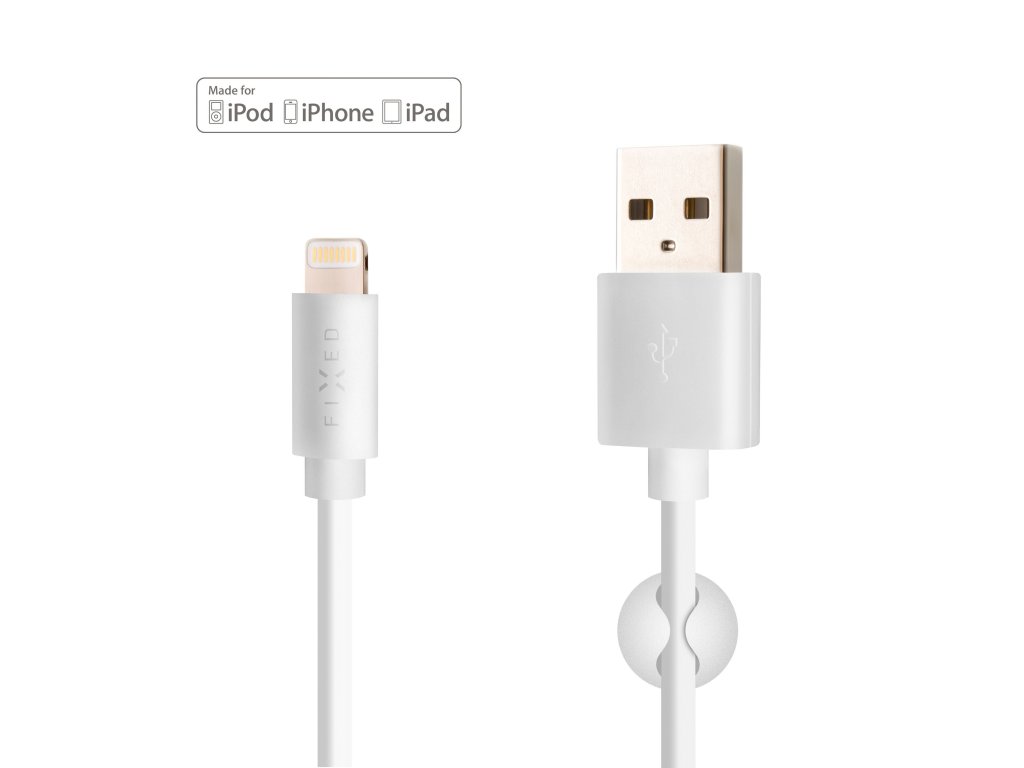 Dlouhý datový a nabíjecí kabel FIXED s konektory USB/Lightning, 2 metry, MFI certifikace, bílý (FIXD-UL2M-WH)