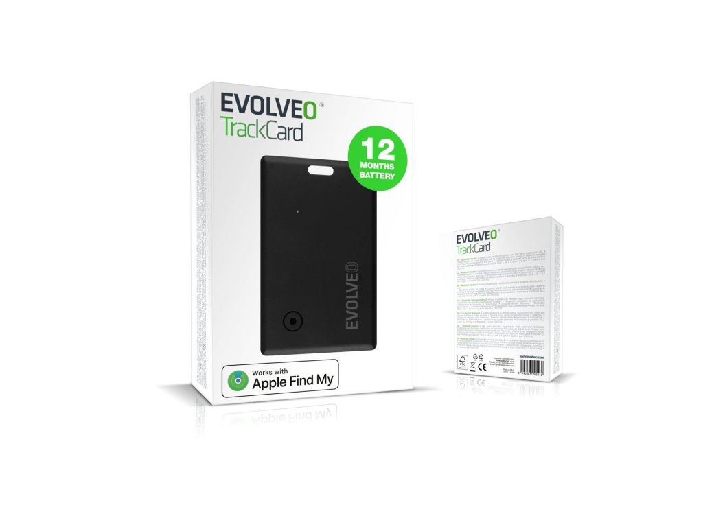 Svou velikostí a tvarem připomíná EVOLVEO TrackCard klasickou platební kartu. S rozměry 85,2 × 54 mm, tloušťkou pouhých 3,2 mm a hmotností jen 16 g ostatně můžete lokátor nosit v peněžence – jako jakoukoliv jinou kartu. Jakmile ho ale spárujete se svým iPhonem, iPadem či iMacem, začnou se dít věci. Tato zdánlivě obyčejná kartička začne vysílat Bluetooth signál a ten se pak přes zařízení ostatních uživatelů přenáší na precizně zabezpečené servery Apple iCloud. Polohu vašeho lokátoru tak neustále zpřesňují stovky milionů přístrojů z celého světa. Když pak kartu ztratíte, není problém ji najít.